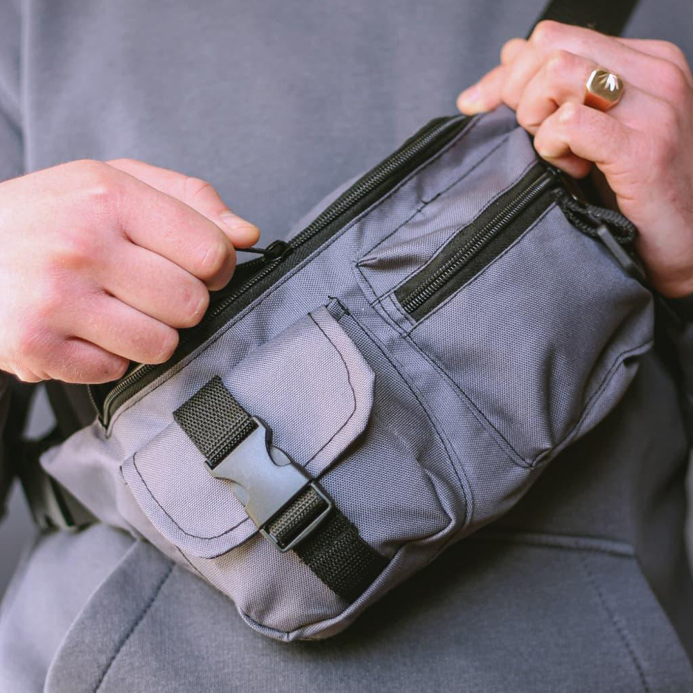 Бананка з тканини тактична із зовнішніми кишенями. JF-763 Колір: сірий