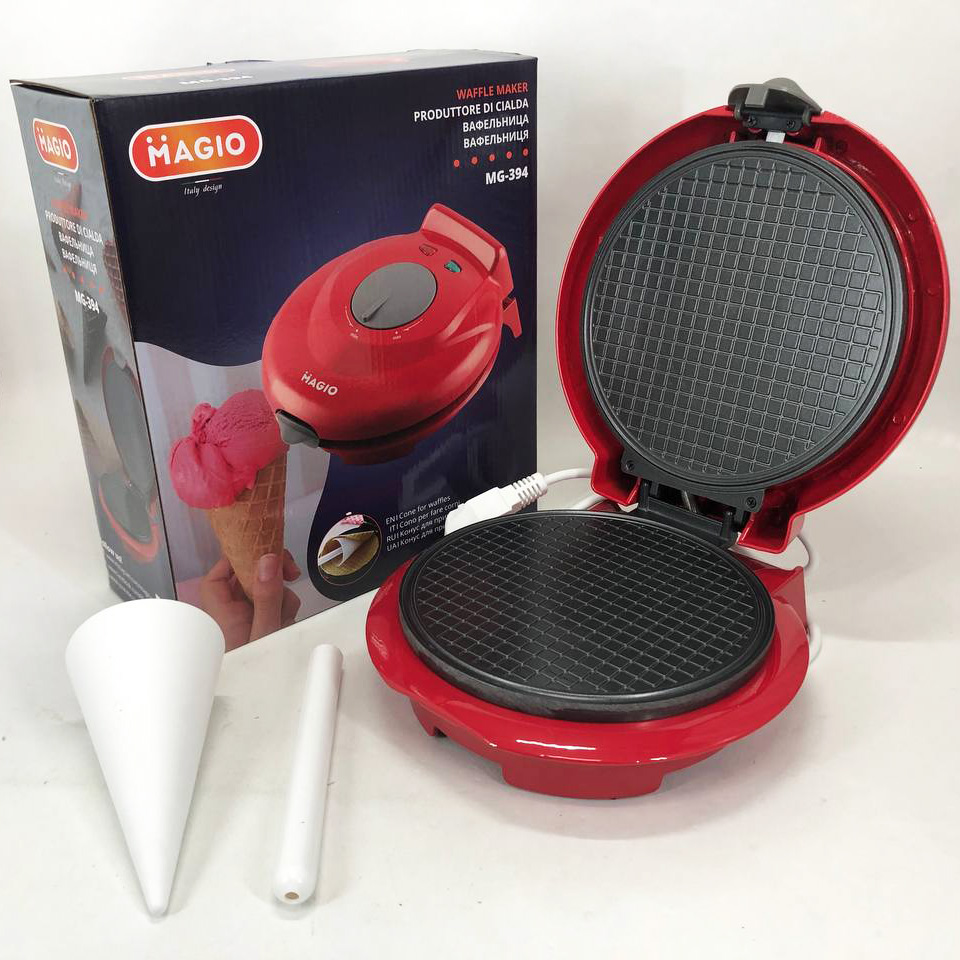 Вафельниця Magio MG-394 володіє всіма необхідними функціями для того, щоб швидко і без клопоту спекти до сніданку смачні та ароматні вафлі Нагрівальний елемент потужністю 750-770 Вт забезпечить швидке і рівномірне нагрівання двох робочих поверхонь з антипригарним покриттям Вафельниці Magio дуже зручні у користуванні, вафлі не пригорають і легко витягуються Завдяки компактним розмірам та фіксатору вафельницю зручно зберігати На кришці є світлові індикатори живлення та готовності до роботи, що полегшує контроль процесу приготування У комплект входить конус для приготування ріжків