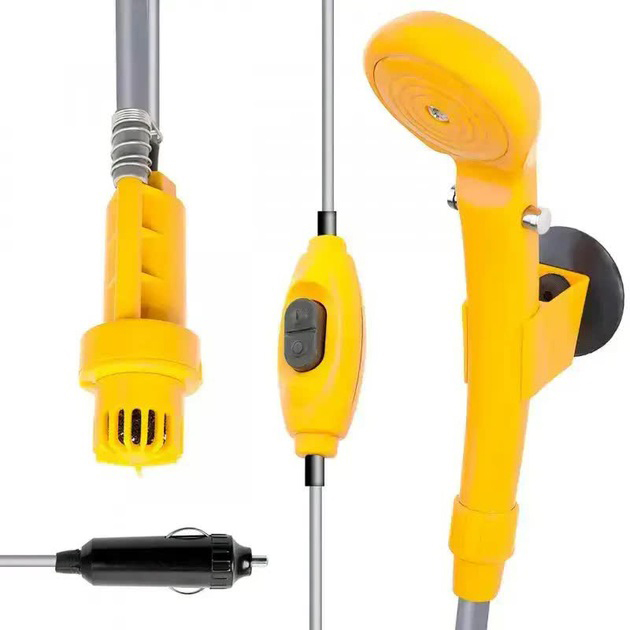 У поході, на рибалці, на дачі чи екстремальних умовах ви зможете згадувати про цивілізацію! Портативний переносний душ призначений для таких умов, коли поруч немає ні водопроводу, ні мережі 220 В Електронасос портативного душу для автомобіля підключається до мережі прикурювача автомобіля автомобіля або акумулятора або до блока живлення з напругою 12В
